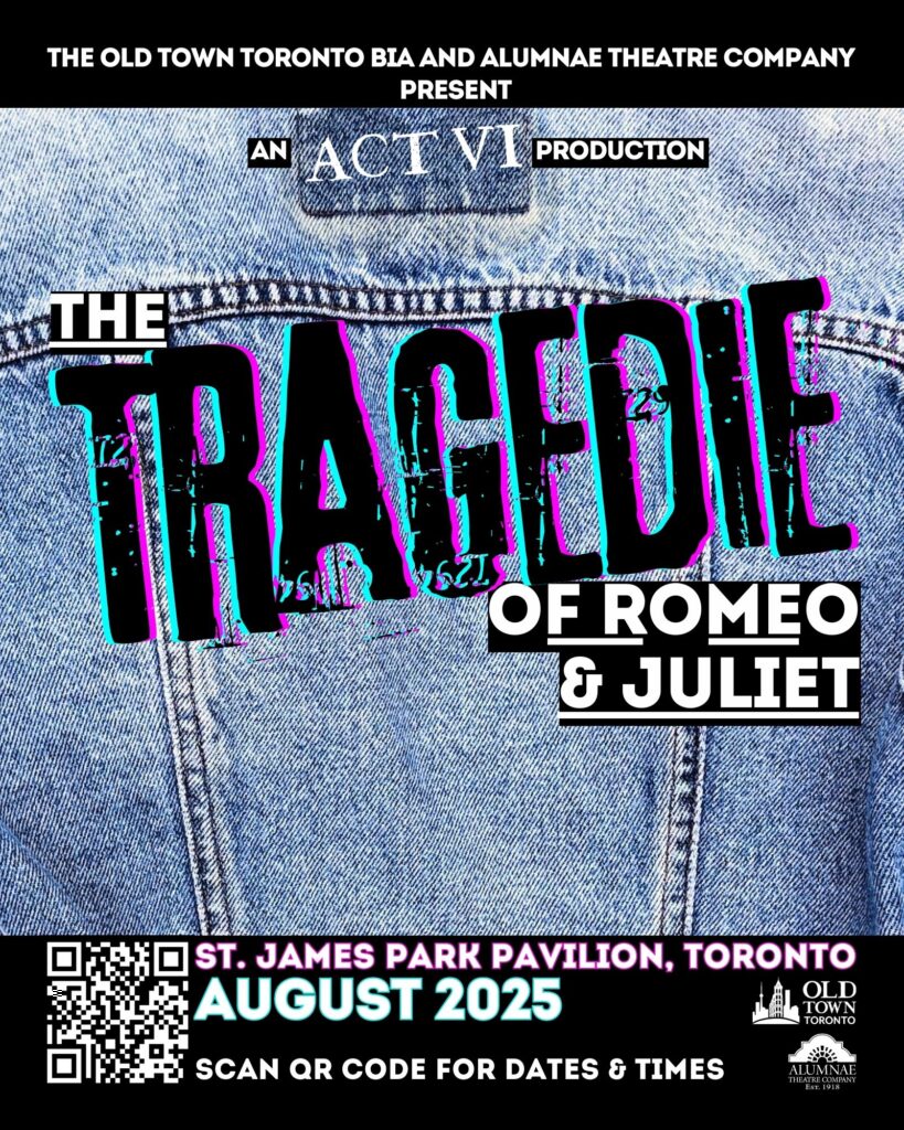 This summer, the Old Town Toronto BIA and Alumnae Theatre Company present a staged reading in homage to the raucous and interactive origins of live performance. Inspired by punk rock and presented outdoors, sans fourth wall, a handful of players will take to St. James Park to tell this story of love, violence and tragedy.